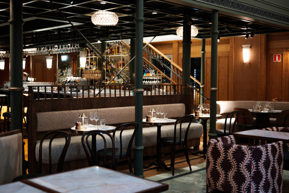 Höga tak, generösa fönster och gedigna material skapar rymd. Interiören bär drag av Paris med färg, textur och energi och ambitionen är tydlig: att bli en självklar mötesplats för Uppsalabor, från dag till kväll.